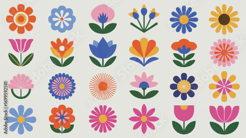 Vector art of collection of colorful floral patterns and designs on a light background