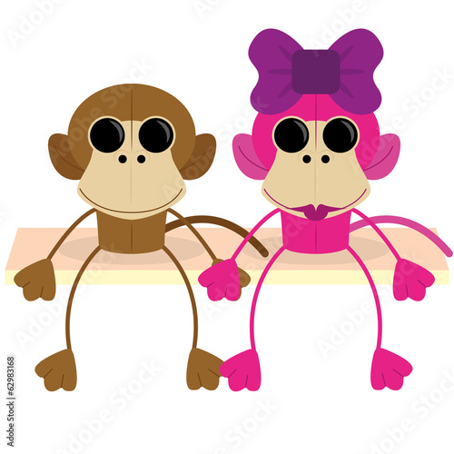 adorable, animal, bow, cartoon, childhood, colourful, couple, cute, design, funny, game, girl, icon, illustration, isolated, children, monkey, object, pink, play, purple, stuffed, toy, vector
