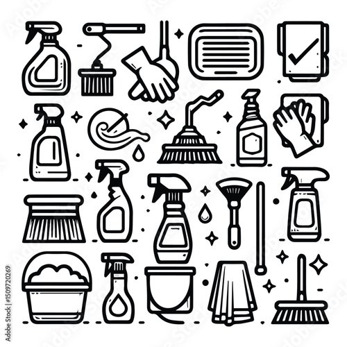 illustration, vector, design, cleaning, isolated, set, clip art, art, icon, collection, element, graphic, symbol, flat, equipment, household, housework, clip, service, laundered, house, cleaner, home, clean, detergent, element, signs, minimal, object, simple, soap, background, floor, pictogram, work, domestic, cartoon, brush, girl, washer, spray, machine, clip art, shape, modern, care, bubble, liquid