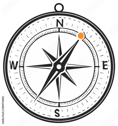 Vector Compass with Cardinal Directions and Needle Pointing North East