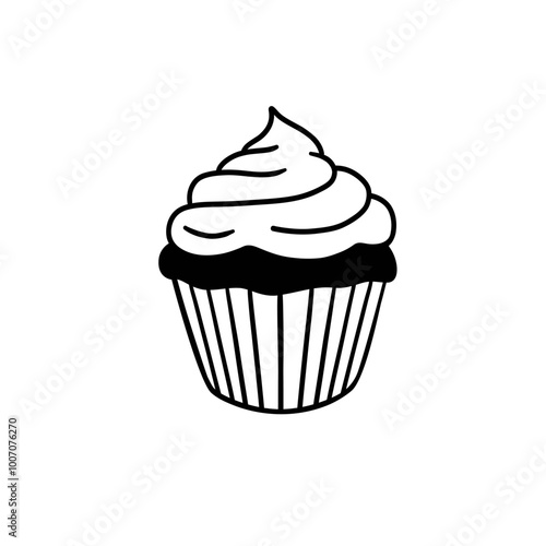 cupcake, muffin, isolated, icon, logotype, minimal, line, contour, drawing, vignetting, doodle, breakfast, bakery, baked goods, baked, dessert, sweet, pastry, line art, black-and-white, whipped cream, cream, frosting, icing, cupcake, cake, bake, sweet food, baking, baker, sweet, delicious, birthday