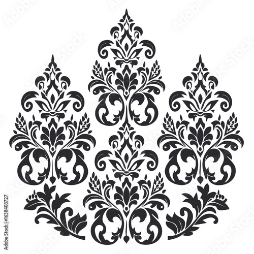 vector, damask, pattern, silhouette, floral, ornamental, decorative, vintage, seamless, luxury, classic, arabesque, antique, retro, design, ornate, elegant, repeat, background, textile, wallpaper, motif, abstract, curve, scroll, element, art, royals, fabric, traditional, style, embellishment, geometric, black, white, graphic, template, interior, decor, historic, baroque, renaissance, minimal, chic, artistic, heritage