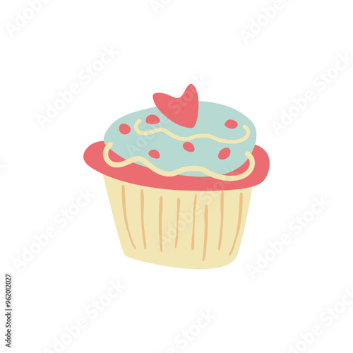Vector delicious flat cupcake and muffin with sweet cream icon. Dessert in doodle style for party, birthday, wedding