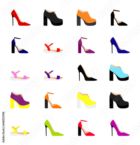 vector, flat, footwear, shoe, set, illustration, boot, isolated, woman, web, concept, icon, collection, woman, symbol, design, fashion, female, mode, platform, simplistic, object, trend, glamour, sandal, sole, elegance, accessory, loafers, leather, element, season, boot, modern, model, winter, walking, femininity, autumn, shop, elegant, casual attire, summer, style, beauty, wear