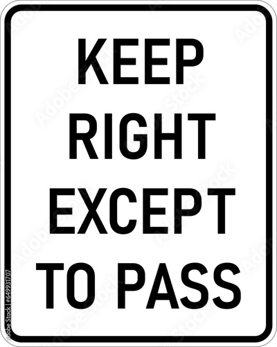 Vector graphic of a usa Keep Right Except to Pass MUTCD highway sign. It consists of the wording Keep Right Except to Pass contained in a white rectangle