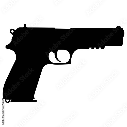 Vector handgun silhouette abstract symbol of defense, security, and critical societal issues.