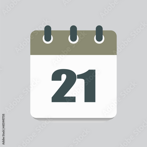 Vector icon calendar day number 21, 21th day month