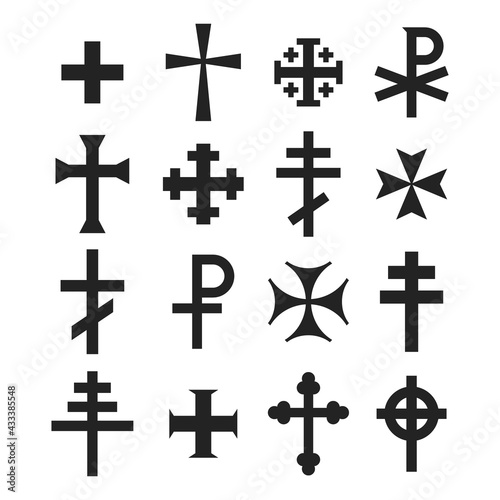 vector icon set with variants of Christian cross for your project