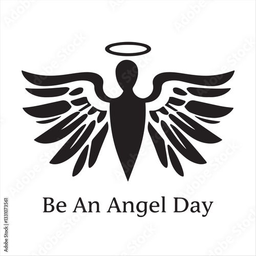 angel, day, vector, logotype, silhouette, black, white, geometric, balanced, symmetric, visually, clear, design, timeless, elegant, aesthetic, be, an, wing, halo, charity, kindness, compassion, help, support, love, peace, hope, religion, spirituality, divine, heavenly, graphic, illustration, symbol, icon, monochrome, simple, minimalist, modern, classic, abstract, artistic, creative, positive, inspirational, awareness, celebration, holiday
