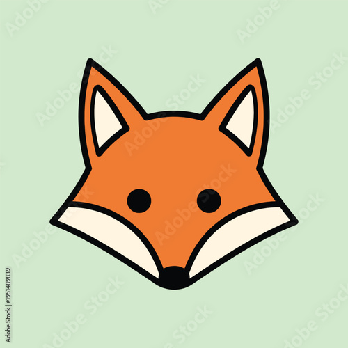 Vector illustration of a vibrant cartoon illustration of a foxs head with orange fur and white markings on a light green background