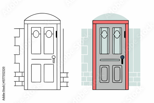 door, entrance, house, wood, architecture, doorway, old, design, window, wooden, wall, frame, home, illustration, open, vector, building, ancient, vintage, closed, decoration, handle, front
