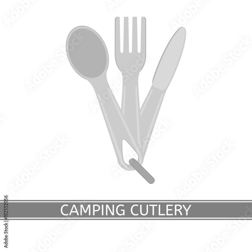 camping, cutlery, isolated, flatware, spoon, fork, knife, vector, icon, compact, folding, equipment, food, portable, stainless, steel, travel, utensil, tableware, dinnerware, cut, metal, silver, tool, collapsible, pocket, eating, accessory, closeup, traveling, meal, holiday maker, flat, tour tourism, camp, vacation, journey, outdoors, illustration, design, element, symbol, style, computer, concept, background, white, object, colours
