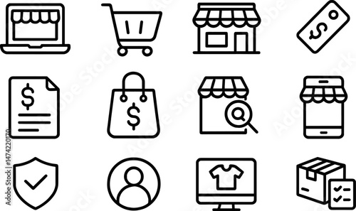 Vector illustration of e-commerce icons showcasing shopping and transaction activities for online retail