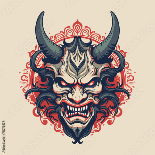 vector illustration of japanese d2mon oni mask grapich design for tshirt design