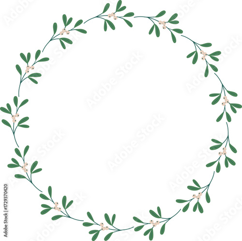 Vector illustration of mistletoe wreath. Christmas Botanical Wreath. Transparent background.