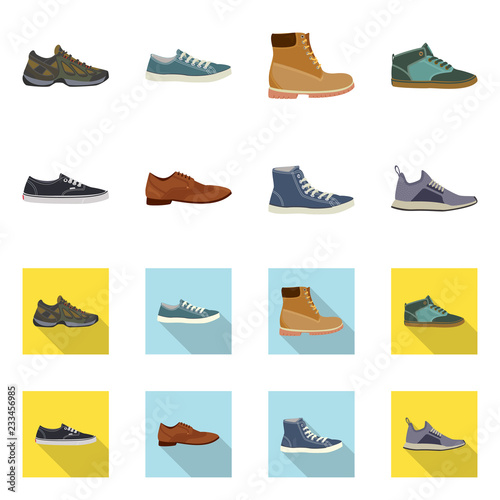 Vector illustration of shoe and footwear icon. Set of shoe and foot vector icon for stock.
