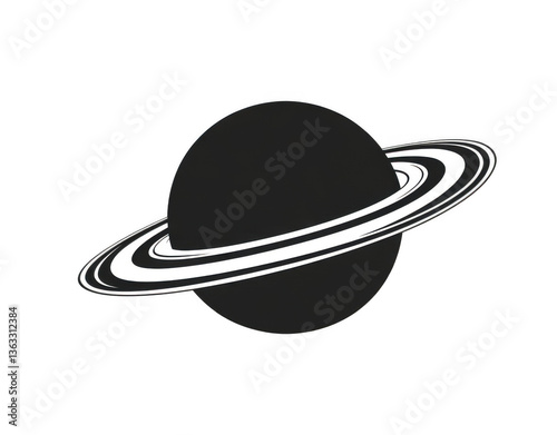 Vector illustration of the planet Saturn, in a minimalist style, with a black design on a white background