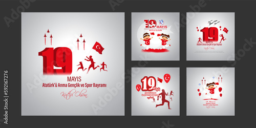 Vector illustration of Turkey Youth and Sports Day social media story feed set mockup template