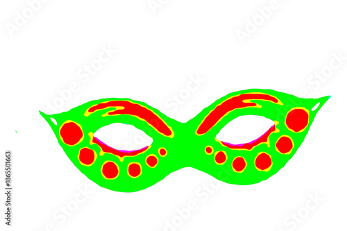 Vector image of a mask and streamers for a carnival costume, representing a joyful Brazilian celebration, on a transparent white background with space for text.