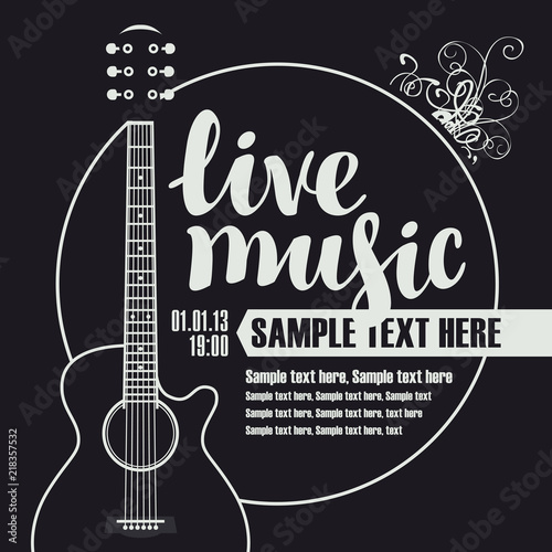 Vector music poster for festival or concert of live music with guitar and place for text on the black background