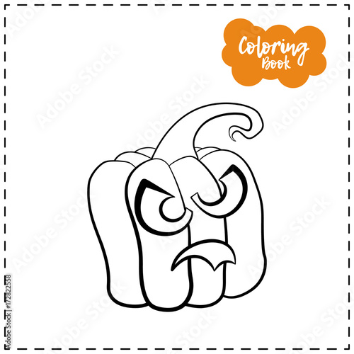 Vector outline illustration of a pumpkin lantern for Halloween with emotion on a white background