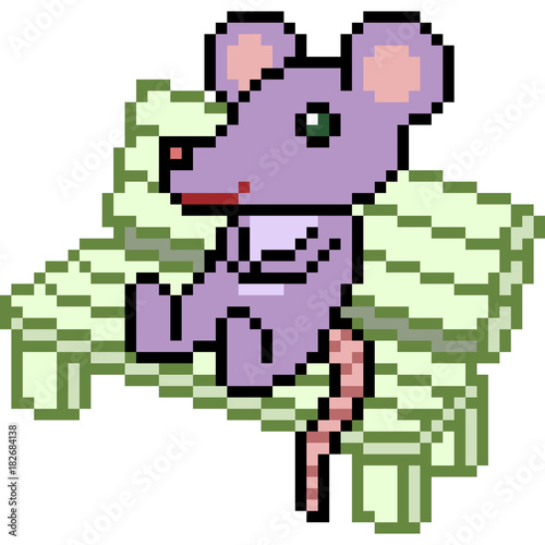 vector pixel art rat sit