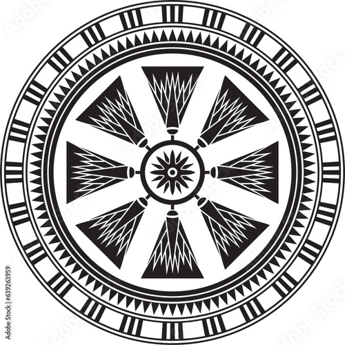 Vector round black monochrome Egyptian ornament. Endless circle border, ancient Egypt frame..