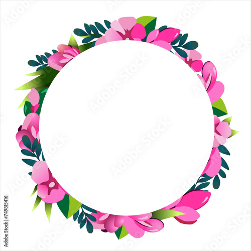 Vector round frame of hand drawn flowers for words. Isolated red pink vignette for flat design