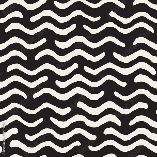 Vector Seamless Black And White Hand Painter Wavy Lines Pattern