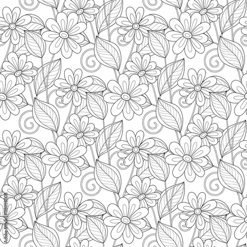 Vector Seamless Monochrome Floral Pattern