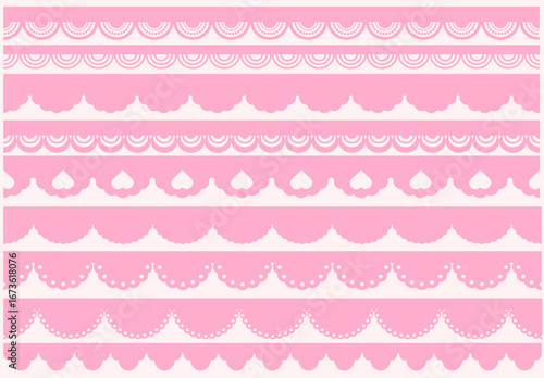 Vector seamless set with jagged edge. Borders and dividers. Repeating frill ornament. Element for your texture ribbons design