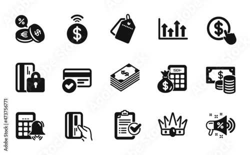 icon, buy, currency, finance, calculating machine, alarm, blocked, card, sale, tags, payment, exchange, dollar, upper, arrow, survey, checklist, coin, banknote, megaphone, crown, store, special, offer, loan, investment, calculation, accept, banknote, accounting, coin, pointer, savings, shopping, business, atm, management, black, friday, choice, flat, document, set, vector, symbol, isolated, simple