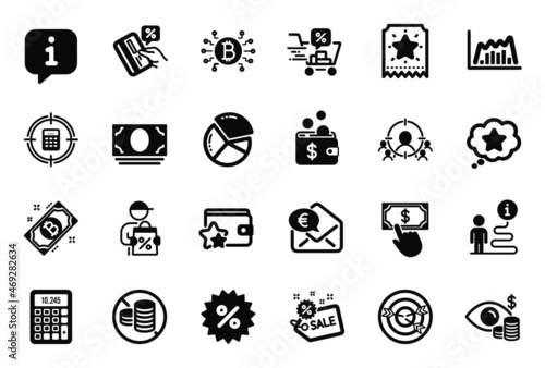 icon, info, loyalty, ticket, discount, cart, calculating machine, delivery, discount, sale, cash, money, business, vision, pie, chart, payment, click, no, system, euro, program, infographic, graph, credit, card, target, targeting, accounting, percent, investment, auditing, product, statistic, diagram, eye, bank, contribution, reward, aim, mail, buy, management, point, set, vector, inform, billfold, journey