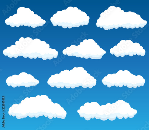 vector set with white clouds on blue sky background