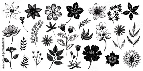 Vector silhouette collection showcasing a variety of floral designs intricate detail suitable for diverse artistic projects Transparent PNG generated AI stickers, for notebook, diary, cute aesthetic