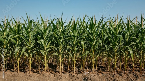 Vegetable plantation of ripe corn standing tall in an open farmland setting