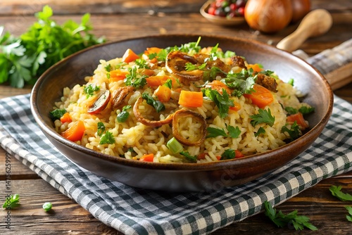 Vegetable Pulao with Fried Onions