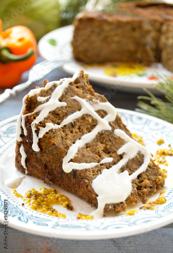Vegetarian lentil-mushroom pie with mustard and lemon