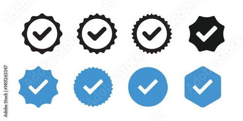 badge, signs, symbol, shape, verification, blue, design, vector, certificate, choice, label, quality, sticker, approved, identity, confirm, examining, computer, web, celebrity, done, accept, award, tick, agreements, success, icon, social, illustration, business, checkmark, cyberspace, media, isolated, buttons, set, check, white, circle, flat, mark, mail, click, app, approve