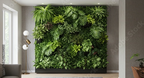 green, plant, wall, garden, vertical, decor, interior, home, design, greenery, foliage, leaf, modern, nature, contemporary, indoor, texture, neutral, isolated, copy space, design element, houseplant