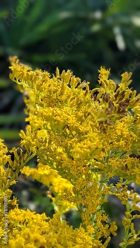 Vertical shot of Solidago canadensis flowers