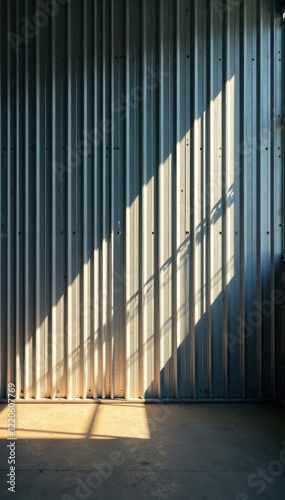 Vertical striped metal sheet, light and shadow play, silver, shadow, abstract