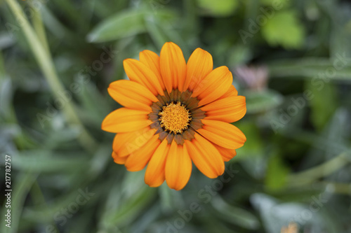 Very beautiful, orange, delicate flower, grows on the lawn with flowers. Nice warm background and decoration.