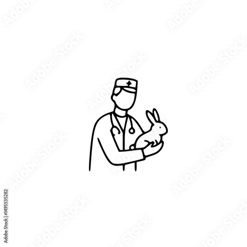 Veterinarian Examining a Rabbit Gentle Pet Care Illustration