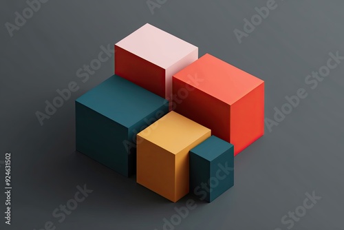 Vibrant 3D Geometric Shapes on Dark Grey Background