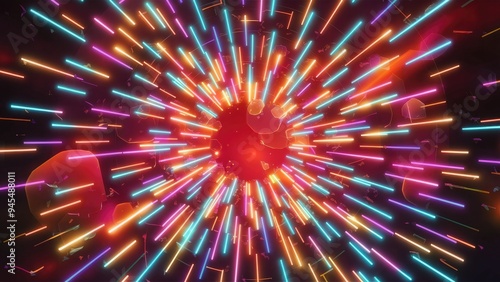 Vibrant Abstract Background with Glowing Multicolor Spline Shapes and Soft Bokeh Effects - 3D Rendering
