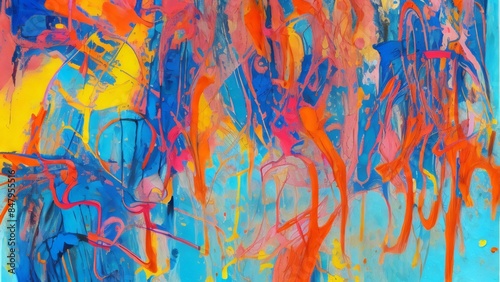 Vibrant Abstract Expressionist Painting with Bold Colors and Energy