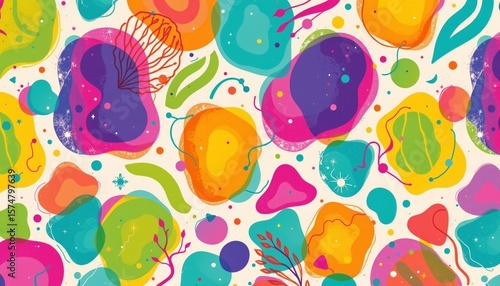 vibrant abstract organic shapes pattern with multicolor space dyed eff