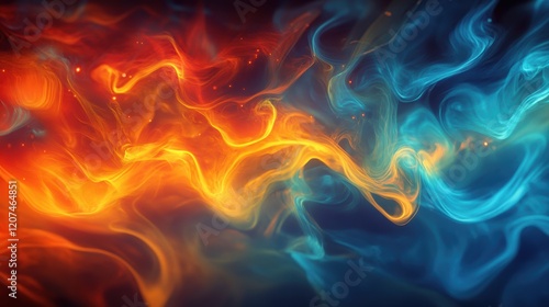 Vibrant Abstract Swirls of Orange and Blue Fire and Water Colors