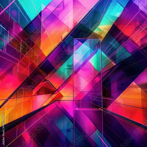 abstract, urban, glasses, panel, staircase, neon, bright, colourful, geometric, overlapping, reflections, modern, dynamic, futuristic, architecture, interior, line, shape, light, high-coloured, purple, pink, blue, orange, magenta, cyan, design, symmetry, perspective, structure, depth, layer, pattern, technology, contemporary, visual, energy, space, contrast, glossy, transparency, complex, angular, many-coloured, illumination, movement, artificial, digital